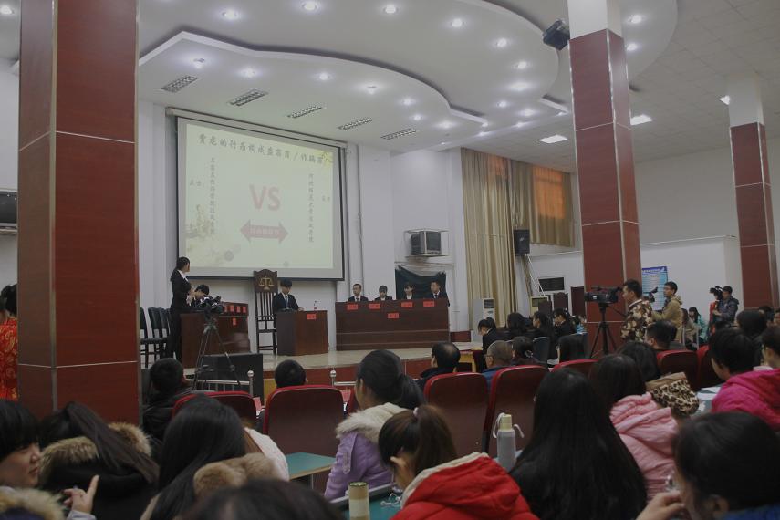本场比赛的辩题以案例“贾龙的行为构成盗窃罪还是诈骗罪”呈现,对阵双方为石家庄经济学院和河北师范大学。台上双方辩手唇枪舌战,引经据典,不仅表现出了高超的辩论水平,也展示出较高的法律素养,让在场观众聆听了一场“口才的艺术,听觉的盛宴”。闭幕式上,民建河北省委社会法制委员会康君元对此次河北省大学生法律专业辩论赛给予了极高评价,并喊出“我们一直在路上,因为我们有梦想”的口号,激励学生们向着理想勇往直前;院长郭广辉对所有在场嘉宾及主办方的大力支持表示了感谢,并希望今后加强各高校之间的互动交流,为大学生全面发展、展现才能提供舞台,为增进校际友谊、扩大学校间对话交流提供平台,引领大学生更深层次思考社会问题及法律问题。
