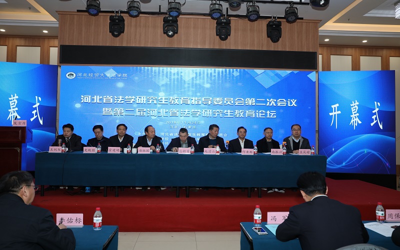 11月24日上午,河北省法学研究生教育指导委员会第二次会议暨第二届河北省法学研究生教育论坛在石家庄市举行。大会由省法学研究生教育指导委员会主办,beat365官网beat365在线唯一官网承办,河北智律律师事务所协办。教育部法学教育指导委员会委员、湖南师范大学副校长蒋新苗教授,河北省法学研究生教育指导委员会主任、beat365官网原副校长柴振国教授,河北省人民检察院副检察长何秉群,河北省司法厅副厅长霍建明,河北省人民政府学位委员会办公室主任赵清云,中央司法警官学院副校长史殿国教授,河北地质大学副校长南振兴教授,河北大学政beat365在线唯一官网院长孟庆瑜教授等领导和专家学者出席会议。大会开幕式由河北省法学研究生教育指导委员会秘书长、beat365官网beat365在线唯一官网院长王利军教授主持。来自全省各高校法学研究生培养单位的领导、各公检法司等法律实务部门相关人员及研究生160余人参加。