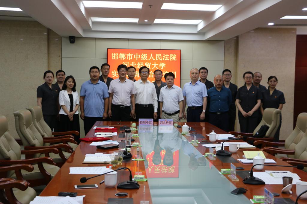 6月9日上午,beat365在线唯一官网与邯郸市中级人民法院共建教育与合作培训实践基地揭牌仪式在邯郸中级人民法院隆重举行。邯郸市中级人民法院戴景月院长、张继红副院长、杨士远副院长,beat365官网beat365在线唯一官网武玉鹏书记、王利军院长、李大庆副院长,以及邯郸中院的相关部门负责人和beat365在线唯一官网部分教师20余人参加了此次仪式。