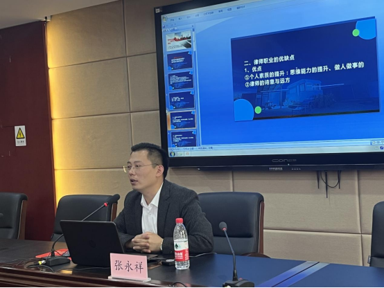 4月14日下午,beat365在线唯一官网邀请2015届国际法专业毕业研究生、北京市盈科(邯郸)律师事务所张永祥律师于beat365在线唯一官网三楼报告厅开展了题为“律师的自我进化—如何扎实稳重的成为一名好律师”的校友论坛专题讲座。活动由学院学生工作办公室主任陈运涛主持,2021级、2022级研究生70余人参加。