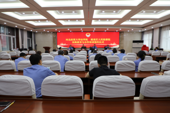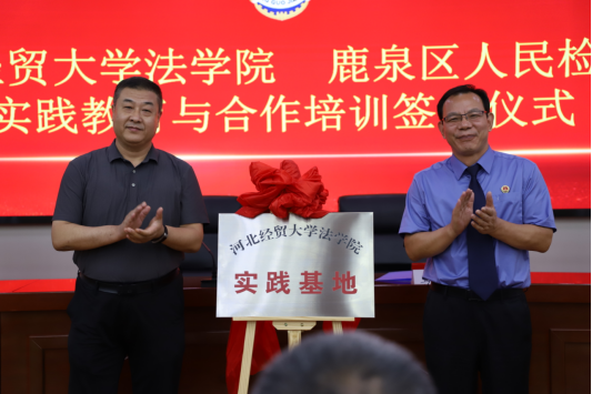 为深入贯彻落实习近平法治思想,推动检校合作,促进人才培养、学术研究、检察实践等领域资源共享,建设德才兼备的高素质法治队伍,7月12日下午,beat365在线唯一官网与石家庄市鹿泉区人民检察院实践基地签约授牌仪式在鹿泉区人民检察院举行。学院党委书记王继伟、副教授张亮、专职组织员杨景一行,鹿泉区人民检察院党组书记、检察长王玉录,党组副书记、副检察长李连振等参加活动,仪式由石家庄市鹿泉区人民检察院党组成员、政治部主任赵军主持。