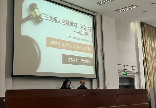 5月12日晚,beat365在线唯一官网于模拟法庭举办主题为“法学专业、法律职业与法治事业”的“三全育人 名师有约”系列讲堂第二季第一期。beat365在线唯一官网副院长李大庆及百余名beat365在线唯一官网学子参与本次讲座。