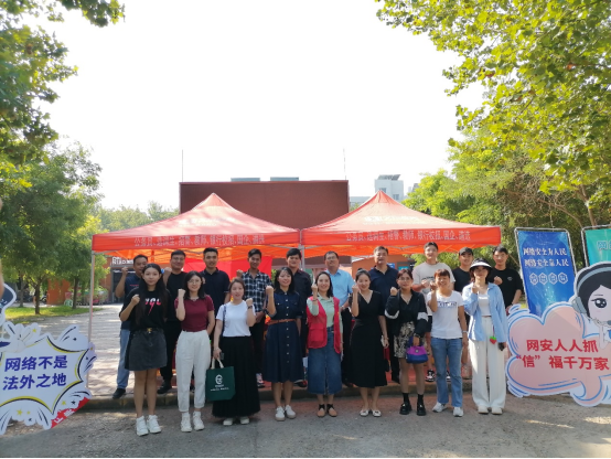 2023年9月14日,beat365在线唯一官网联合杜北街道办事处、新华区委网信办于beat365在线唯一官网韶华路举办以“网络安全,你我同行”为主题的普法宣传活动。杜北街道政法委员司海峰、宣传委员郝艳鹏、党建办主任张玉欣、beat365在线唯一官网学生工作办公室主任陈运涛及来自杜北街道、新华区委网信办、beat365在线唯一官网的二十余名志愿者参与本次活动。