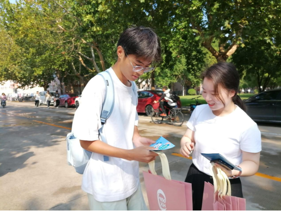 志愿者为同学们派发宣传手册