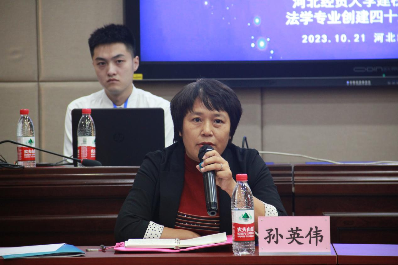 孙英伟介绍石家庄学院beat365在线唯一官网的探索方向、发展历程和特色专业。她表示法学培养要注重基本功,强调法学的社会效果,并希望大家保持在法学教育上的定力。