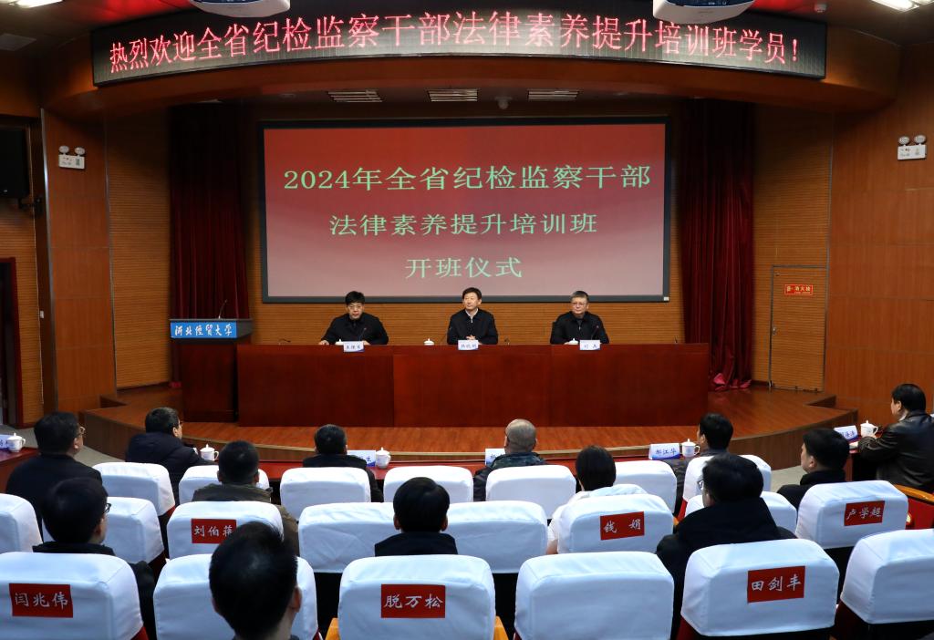 2月27日下午,由beat365官网承办的河北省纪检监察干部法律素养提升培训班开班式在国际学术报告厅举行。省纪委副书记、监委副主任韩晓明作开班讲话,校党委书记刘兵致辞,省纪委监委组织部部长杨士彬、副部长高大磊出席,开班仪式由校党委常委、纪委书记王保军主持。