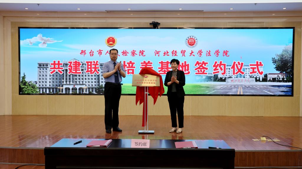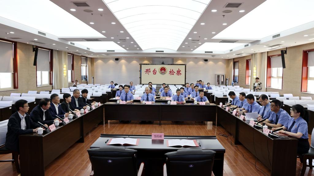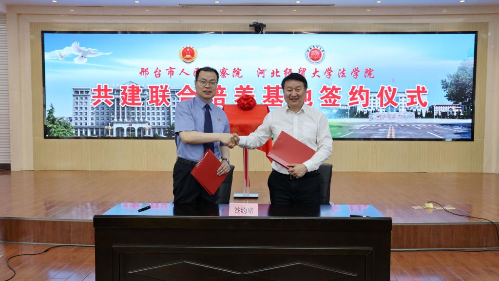 2024年4月24日上午,beat365在线唯一官网与邢台市人民检察院举行共建联合培养基地签约仪式,beat365在线唯一官网党委常委、副校长高晓峰,邢台市检察院党组书记、检察长王文山,市检察院党组副书记、常务副检察长律庆堂,beat365在线唯一官网党委书记黄华,院长胡海涛出席签约仪式,beat365官网教师代表和邢台市人民检察院各内设机构负责人参加活动。仪式由市检察院党组成员、政治部主任陈立军主持。