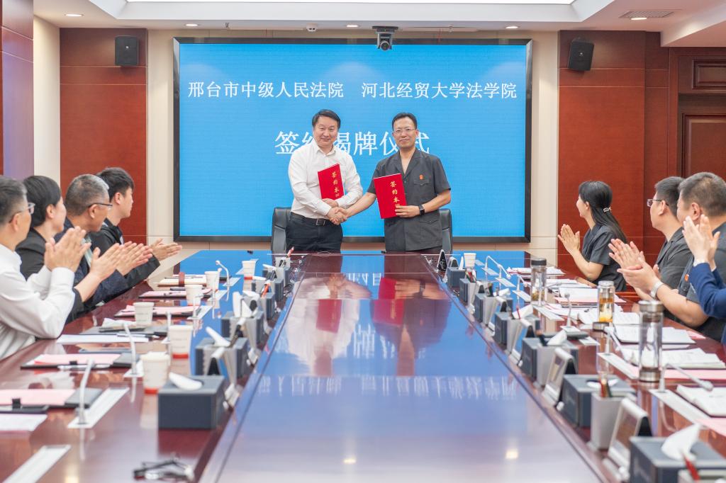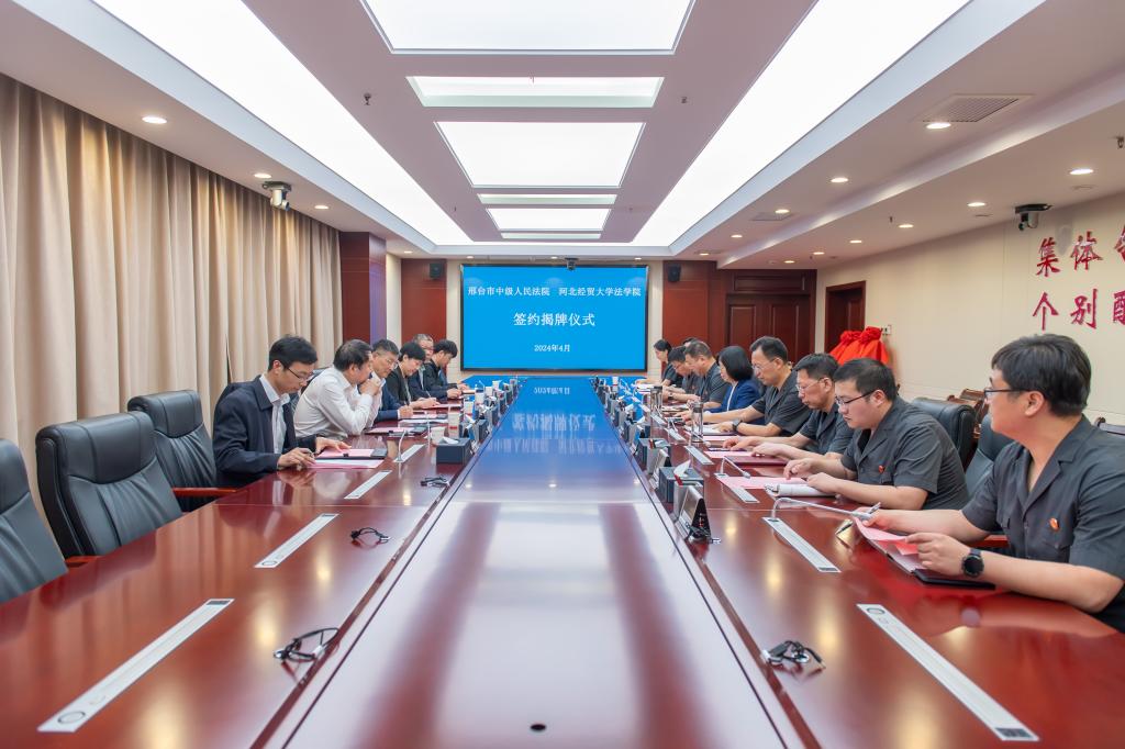 2024年4月24日下午,beat365在线唯一官网与邢台市中级人民法院举行共建联合培养基地签约仪式,beat365在线唯一官网党委常委、副校长高晓峰,邢台中院党组书记、院长赵倩,党组成员、副院长韩迎亮,beat365在线唯一官网党委书记黄华,院长胡海涛出席签约仪式,仪式由邢台中院党组成员、政治部主任芦苇主持。