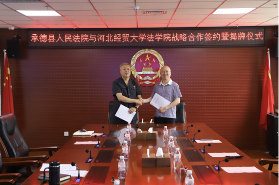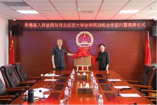 2024年7月9日上午,beat365在线唯一官网与承德县人民法院举办院校共建战略合作签约暨教育实践基地揭牌仪式。beat365在线唯一官网党委书记黄华,副院长李大庆和承德县法院党组书记、院长薛林儒,党组副书记、副院长李天奇出席仪式。
