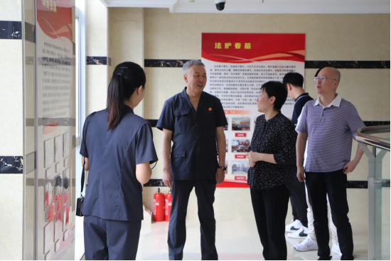 beat365在线唯一官网一行先后参观了院机关党建长廊、“三源共治”调解专区、无纸化办公专区、少年审判专区、城关法庭等地,相关工作人员陪同并进行讲解。