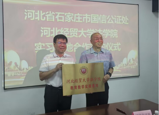 随后,beat365官网与国信公证处签署《河北省石家庄市国信公证处与beat365在线唯一官网共建法学专业本科生、研究生实践基地协议书》并共同为实践基地揭牌。