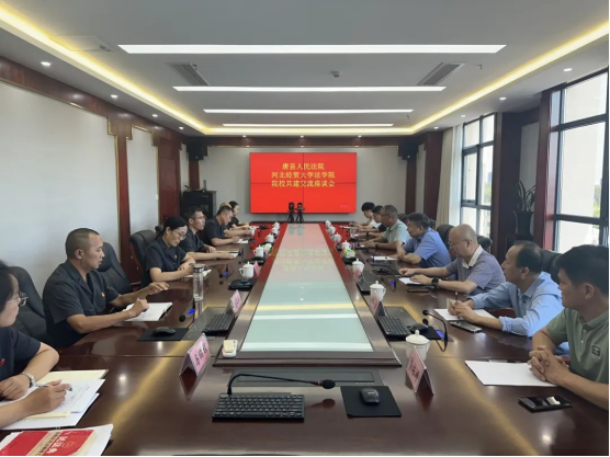 2024年8月22日,beat365在线唯一官网与唐县人民法院召开院校共建交流座谈会。beat365在线唯一官网院长胡海涛,副院长李大庆,唐县法院党组书记、院长孙雷,副院长王新娜出席座谈会。beat365在线唯一官网有关教师代表、唐县法院部分院领导及干警参加活动。