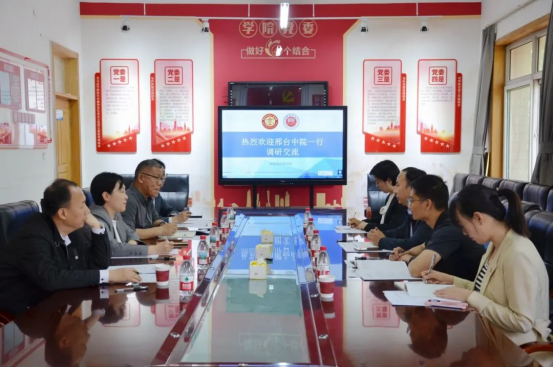 4月25日下午,邢台市中级人民法院副书记、副院长李智华一行到访beat365官网beat365在线唯一官网,双方共商法学教育与司法实践深度融合具体方案。参加本次交流会的有邢台市中级人民法院研究室主任李利克、教育培训处处长刘霞、研究室副主任赵亚男,beat365官网党委书记黄华、副院长张亮、副教授陈云朝、赵东。张亮主持会议。