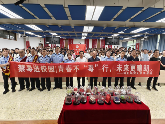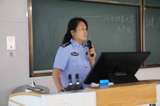 石家庄市第二强制隔离戒毒所二大队副大队长高洁以“识毒拒诱惑,防毒护未来”为主题,通过真实案例深入剖析了毒品的危害性和隐蔽性,警示同学们坚决抵制诱惑、远离毒品,树立健康人生的价值观。通过一系列的知识问答为同学们强化了对毒品基本概念的了解。宣讲的高潮环节,高洁带领在场全体人员进行了庄严的禁毒宣誓,通过这一仪式,将防毒拒毒的种子深深植入了每位学子的心中。