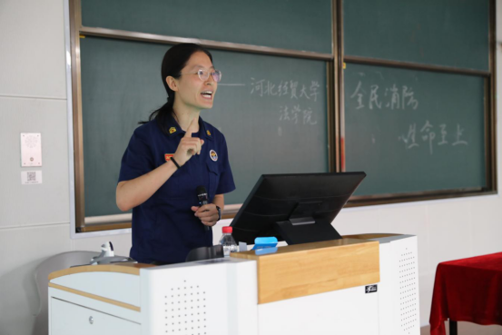 最后的消防安全宣讲环节,新华区消防救援大队消防宣传员王笑蕾通过触目惊心的真实火灾案例,为同学们敲响了警钟。她详细讲述了近年来高校中发生的火灾事故,特别是因违规使用电器电动车违规充电等引发的火灾案例,通过画面和数据的展示,让同学们直观感受到火灾的残酷性和防范的重要性,并针对校园火灾预防提出了具体要求:严禁在宿舍使用大功率违规电器,不私拉乱接电线,熟悉消防设施位置和使用方法,掌握火场逃生基本技能。