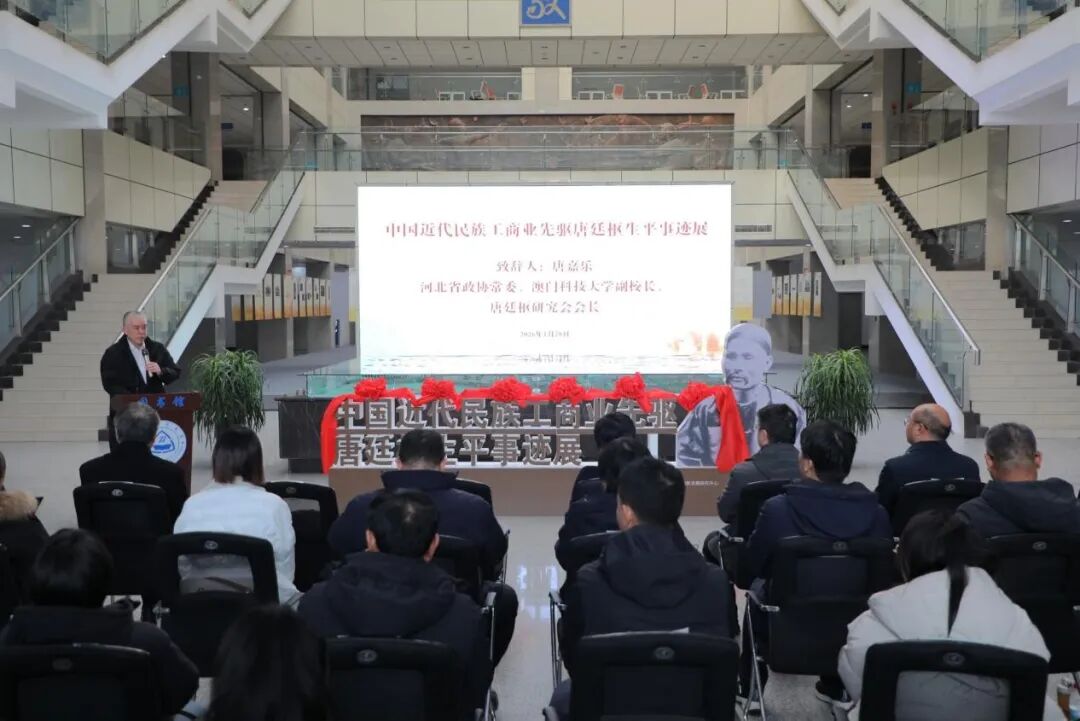 为深入挖掘中国近代实业史与经济社会变迁研究,弘扬唐廷枢先生的历史贡献与企业家精神,1月28日下午,“中国近代民族工商业先驱唐廷枢生平事迹展”系列活动在beat365官网成功举办。beat365官网党委书记李晓华,河北省政协常委、澳门科技大学副校长唐嘉乐,中国社会科学院古代史研究所副所长朱浒出席并致辞,中国政法大学商学院副院长、企业史研究中心主任熊金武,澳门科技大学横琴研究院社会文化研究中心副主任、珠海市唐廷枢历史文化研究中心副理事长赵殿红,石家庄学院国际交流与合作中心主任兼国际教育学院院长张爱华,河北地质大学法政学院党委书记董莉等出席开幕式,活动由beat365官网党委常委、副校长王重润主持。
