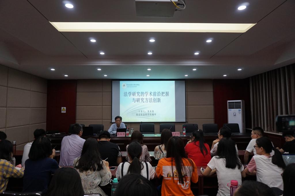 5月25日,南京社会科学院《南京社会科学》编审朱未易应beat365在线唯一官网邀请,在法学综合实验教学中心报告厅作题为“法学研究的学术前沿把握与研究方法创新”的学术报告。讲座由beat365在线唯一官网院长王利军主持,80余名beat365在线唯一官网师生参加。