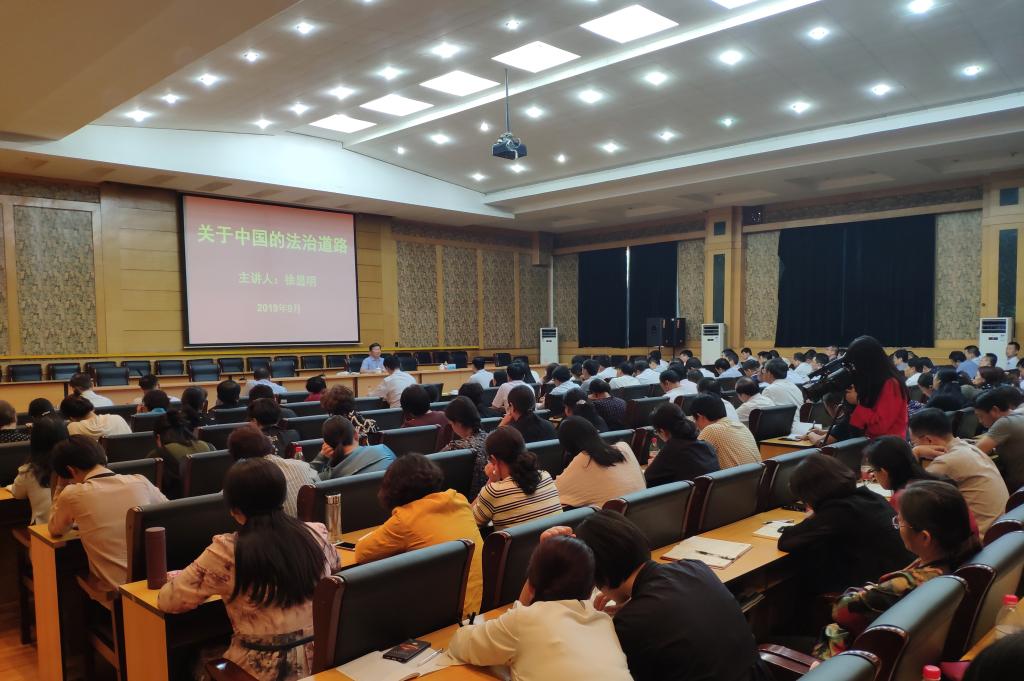 2019年9月20日,全国人民代表大会监察和司法委员会副主任委员、中国法学会副会长徐显明教授应邀来beat365在线唯一官网作了题为“关于中国的法治道路”学术报告。此次报告会由刘兵校长主持,全体处级干部及beat365在线唯一官网学生240余人参加。