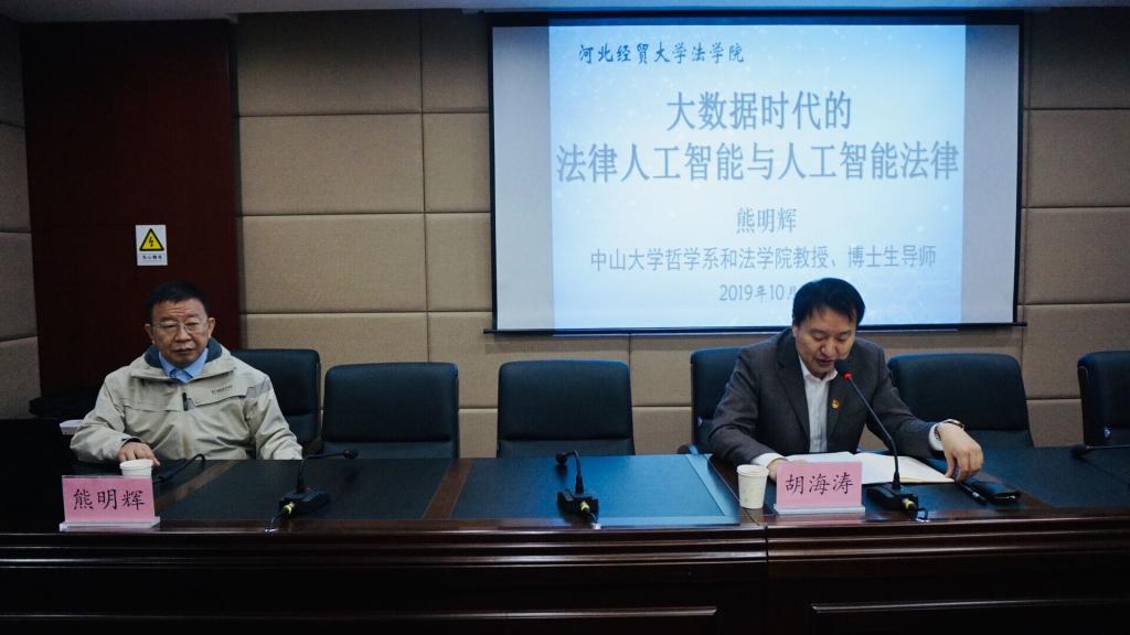 10月18日上午,中山大学博士生导师熊明辉教授应beat365官网邀请来法学综合实验楼报告厅作题为“大数据时代的法律人工智与人工智能法律”的报告,报告由beat365在线唯一官网副院长胡海涛主持,人工智能法学实验班及其他师生100余名参加并认真聆听了报告。