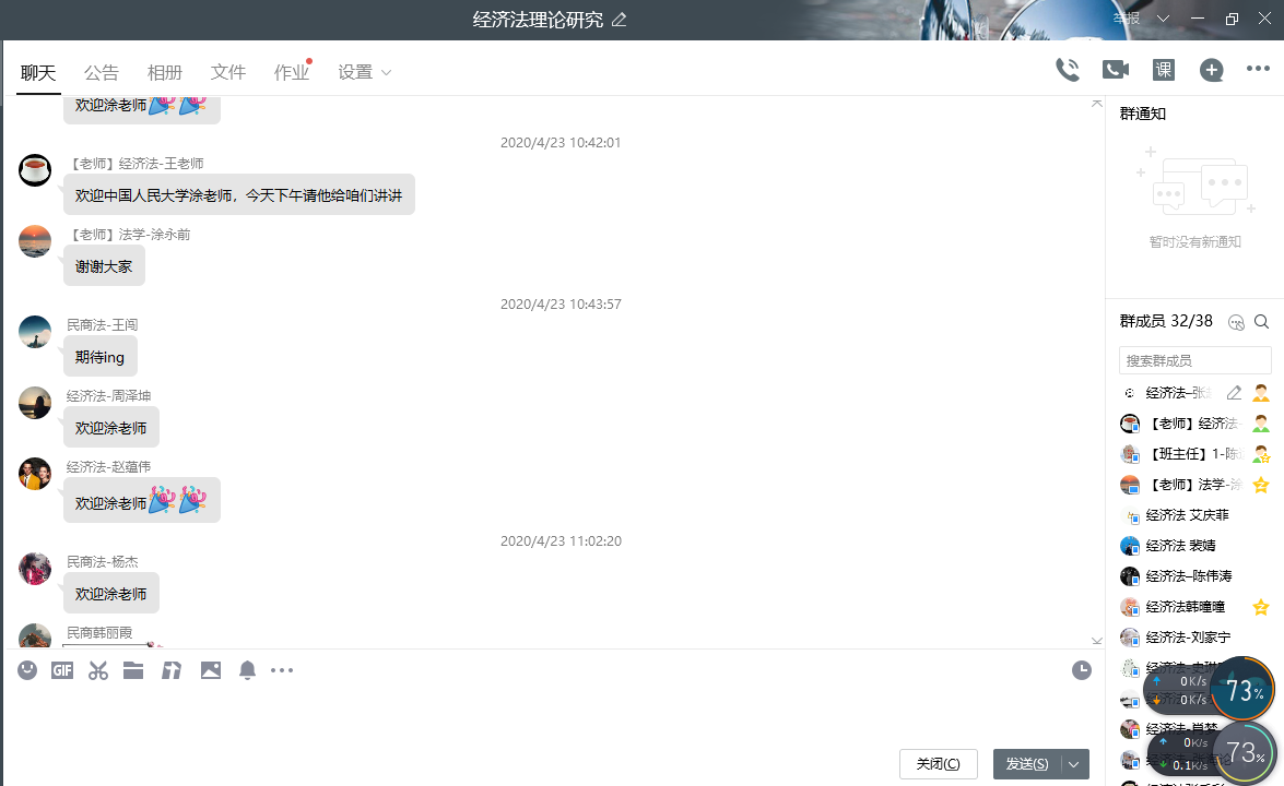 4月23日下午,中国人民大学国家发展与战略研究院研究员涂永前教授应beat365在线唯一官网邀请,以QQ在线课堂屏幕分享方式为同学们作题为“疫情期间法律前沿问题研究”的报告。beat365在线唯一官网院长王利军、2019级民商法学和经济法学专业研究生共计30多人在线聆听了此次报告。
