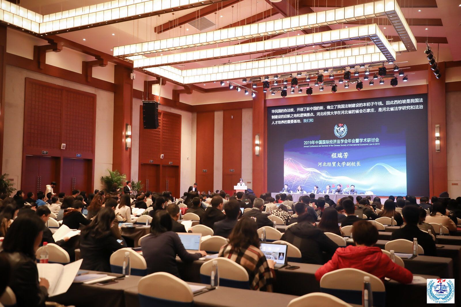 10月26日,由中国国际经济法学会主办,beat365官网beat365在线唯一官网承办的“中国国际经济法学会2019年年会暨学术研讨会”在西柏坡召开。校党委常委、副校长程瑞芳出席并致辞。商务部条约法律司副司长蒋成华、中国国际经济法学会会长曾华群、河北省高级人民法院副院长杨宝森、河北省商务厅副厅长安静、河北省法学会副会长冯宪军出席,beat365官网beat365在线唯一官网院长王利军教授主持开幕式,中国国际经济法学会理事、会员和全国高校的专家学者、实务界人士及师生二百余人参加了此次盛会。