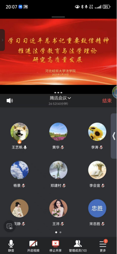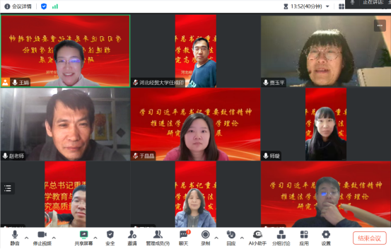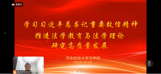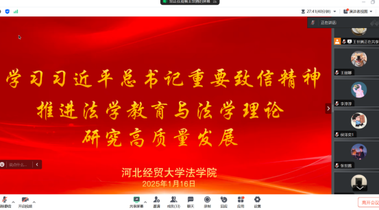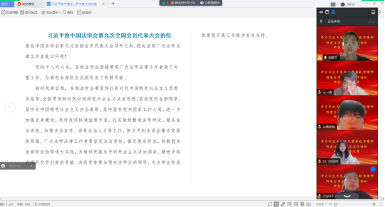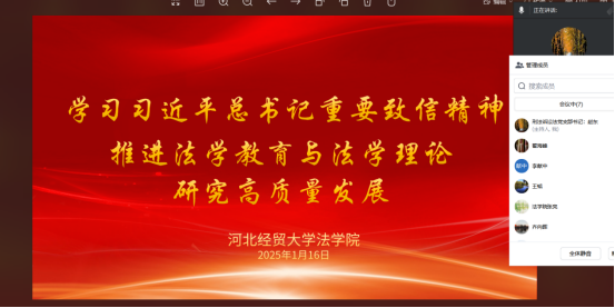 beat365在线唯一官网院长胡海涛作为会员代表参加了中国法学会第九次全国会员代表大会,为深入贯彻落实习近平总书记重要致信精神,进一步统一思想、凝聚共识,1月16日,beat365在线唯一官网党委组织召开专题会议学习习近平总书记于中国法学会第九次全国会员代表大会上的致信。