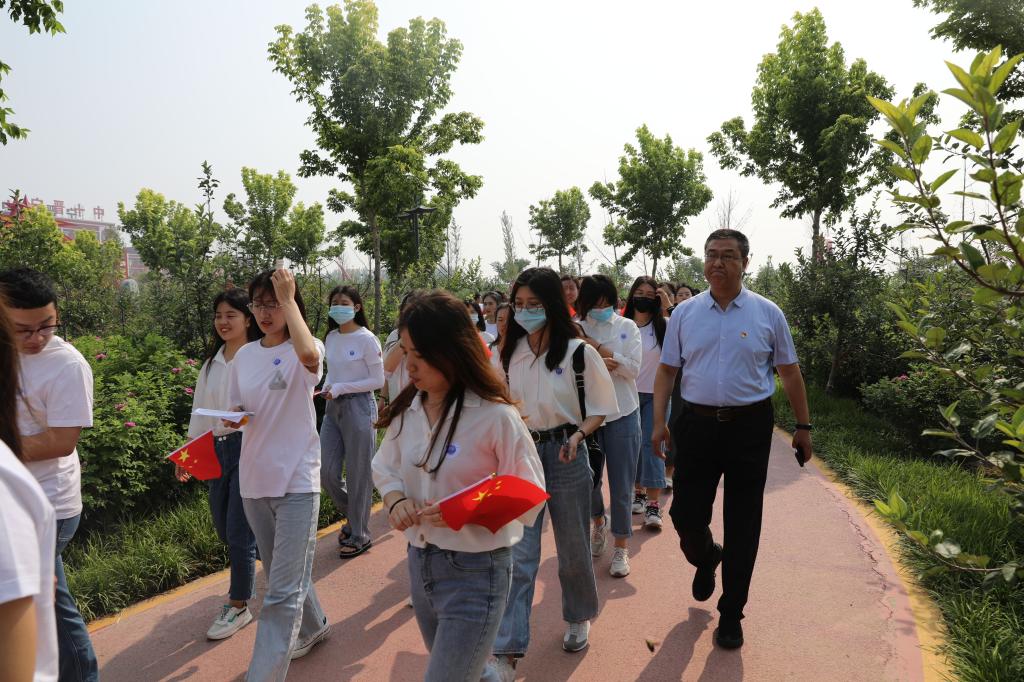 为进一步扎实推进党史学习教育,引导广大党员学生知史爱党、知史爱国,2021年6月26日上午,beat365在线唯一官网党委书记王继伟、党委副书记黄华带领学院新发展党员赴宁晋县黄儿营西村新时代教育实践基地开展党史学习教育,宁晋县原人大常委会副主任张新华、贾家口镇党委书记申立强、黄儿营西村党委副书记宁建强陪同出席了此次活动。