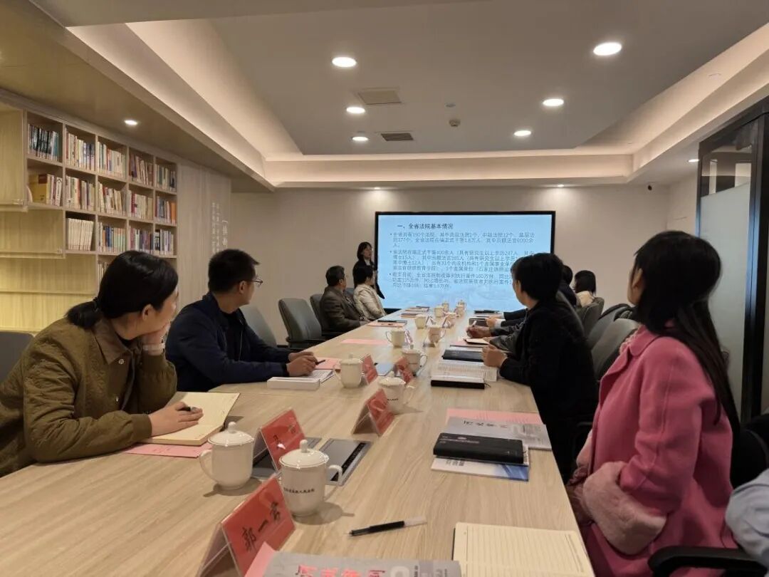 座谈交流环节在省法院图书馆召开,双方围绕“贯彻全会精神、深化校院协同”展开深度研讨。省法院研究室主任吴珊率先发言,全面介绍了全省法院调研工作体系建设、司法体制改革最新进展,重点分享了法院系统在服务保障经济社会高质量发展、践行司法为民宗旨、维护社会公平正义等方面的实践经验与理论思考。
