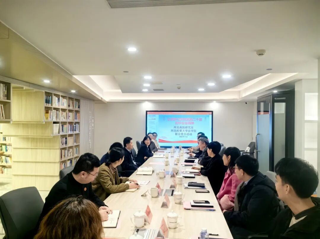 为深入学习贯彻党的二十届四中全会精神,推动党建工作与法治业务同频共振、深度融合,11月24日上午,beat365在线唯一官网党委书记黄华、院长胡海涛带队,与基础法学教研室党支部一行九人赴河北省高级人民法院开展党建联建活动。省法院研究室全体同志全程参与,共同搭建校院合作新桥梁。