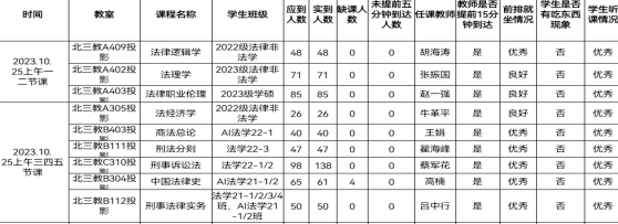 2023年10月25日上午,beat365在线唯一官网教学、学风检查组,对全院教学秩序进行了检查。现将检查结果通报如下: