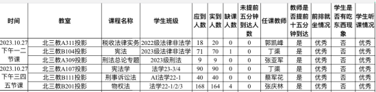 教学运行总体情况良好。检查组安排13名工作人员分别到各个教室,对10月27日下午的上课情况进行了全面检查,共检查6个教学班。教师们整体课程思路清晰,课程的重难点突出,设计饱满合理。各个班级的学生们提前到达教室,认真听课,积极前排就座,主动回答问题,与老师互动,没有出现学生在教室吃东西的现象,学生听课状态优秀。