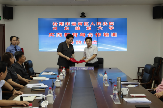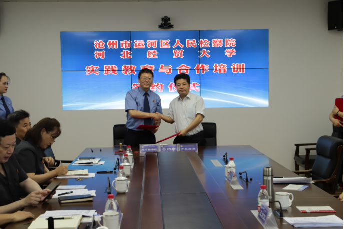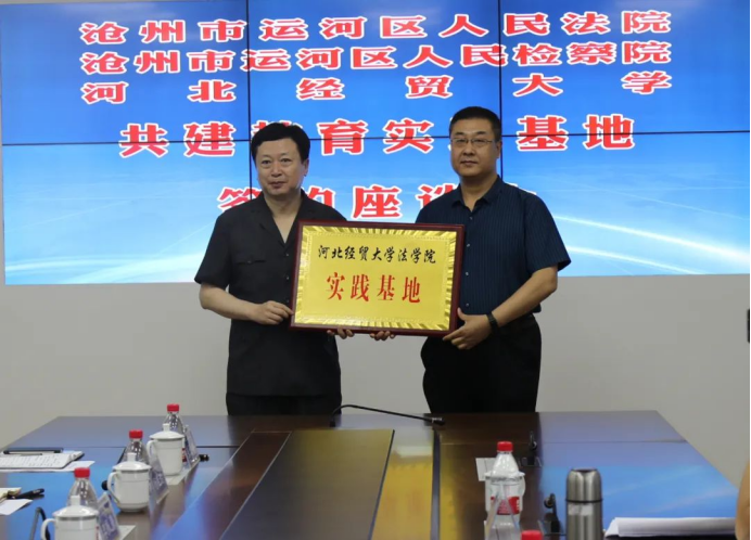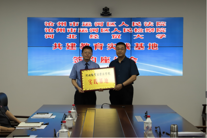 6月18日上午,beat365在线唯一官网与沧州市运河区人民检察院、运河区人民法院共建教育实践基地签约授牌仪式在运河区检察院隆重举行。运河区委常委、政法委书记樊清泉,运河区人民检察院党组书记、检察长王金瓯,运河区人民法院党组书记、院长李振勇,beat365官网beat365在线唯一官网党委书记王继伟、院长王利军和与会各单位相关部门负责人出席了仪式。