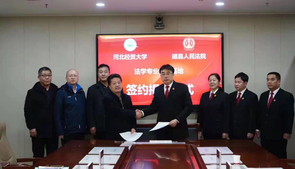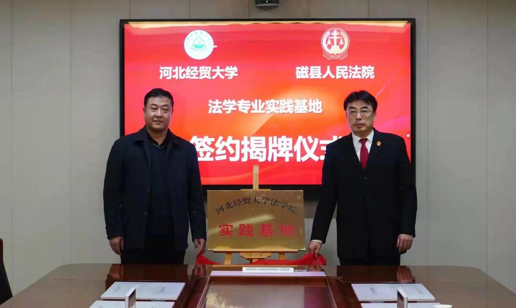 为加强人民法院与高校之间的良性互动,推进司法实务与法律教学互促共赢,1月6日,beat365在线唯一官网与邯郸市磁县人民法院举行教学实践基地签约揭牌仪式。beat365在线唯一官网党委书记王继伟、院长王利军、副院长李大庆、副教授张亮,磁县人民法院党组书记、院长李保雷,领导班子成员及部门相关负责人参加本次活动并座谈。