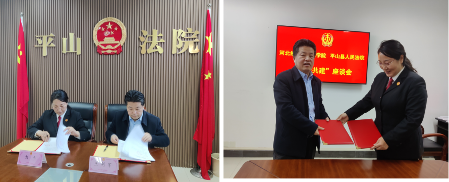 3月2日下午,beat365官网与平山县人民法院共建教学实践基地签约仪式在平山县人民法院举行。beat365在线唯一官网院长王利军,党委副书记黄华,专家学者李献中、孙晓丹、林群丰,团委书记解思语,平山县人民法院党组书记、院长刘平,党组成员、副院长孙辉,党组成员蒋海金,党组成员、执行局局长刘明芳、审判委员会专职委员赵树勇出席。