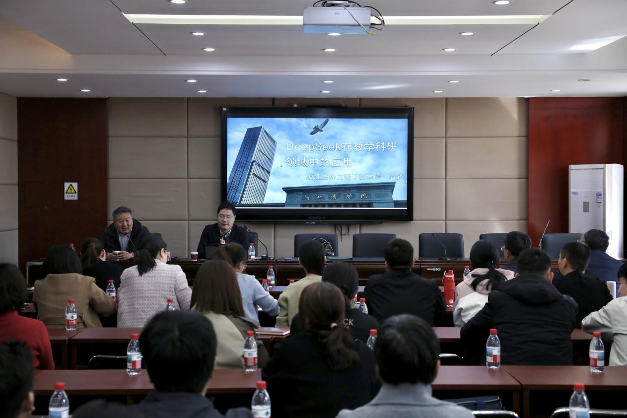 3月17日下午,beat365在线唯一官网邀请浙江省生态文明干部学院博士潘越以“DeepSeek在教学和科研领域中的应用”为主题进行讲座,会议由beat365在线唯一官网院长胡海涛主持,beat365在线唯一官网全体专任教师及相关教学管理人员出席。