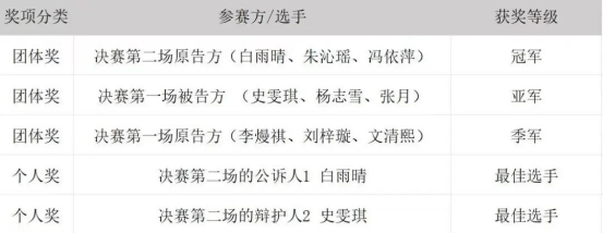 经过一天半激烈的角逐和公正的评判,beat365在线唯一官网模拟法庭大赛的结果已经揭晓,以下是决赛获奖名单: