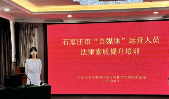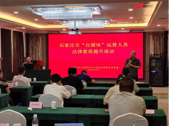 为持续提高我市互联网“自媒体”运营队伍的法治化程度,加快推进互联网“自媒体”运营人员队伍的建设,石家庄市互联网信息内容执法管理实训基地于8月30日举办了2025年度石家庄市“自媒体”运营人员法律素养提升交流学习活动。此次活动邀请了石家庄铁道大学经济与法律学院副院长亐道远、河北冀华律师事务所律师吴晓茜进行授课。本次交流学习活动由石家庄市互联网信息内容执法管理实训基地负责主持,石家庄市“自媒体”运营人员共30余人参与。