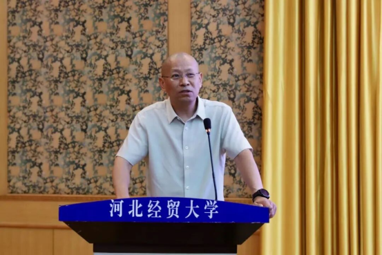 黄华首先代表beat365在线唯一官网全体师生向2025级新生表示热烈祝贺与诚挚欢迎。她指出,beat365在线唯一官网建院时间早、办学层次完整,2011年成为河北省首个法学一级学科硕士学位授予单位。不仅拥有民商法学、经济法学等核心学科,还布局数字法务产业学院、人工智能法学等交叉领域专业,师资汇聚国务院政府特殊津贴专家、全国知识产权领军人才等优秀力量,并依托国家级、省级实践教学基地及与80余个地市法院、检察院共建的实践平台为学生提供从理论到实务的全链条支持;同时提及近年研究生在法律职业资格考试、模拟法庭竞赛、“挑战杯”及考公考编中屡创佳绩。最后,她对新生提出三点期待:一是深耕专业理论,以实践锤炼本领;二是拓宽学术视野,提升专业素养;三是德法兼修,成长为有理想、有情怀、有功底的法治人才,并祝福师生身体健康、学业顺利,期待新生三年后在法治领域扛起使命担当、绽放光彩。