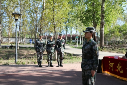 军训团八营营长覃嘉萍代表承训教官表示,全体教官将会率先垂范,发扬不怕苦不怕累的精神,以身作则,言传身教,会用最大的决心和信心,训出好作风、好成绩。