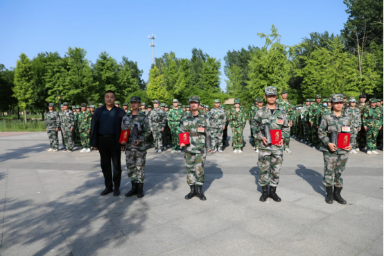 本次军训过程中,从军事技能到日常训练,从纪律作风到内务管理,各个连队之间不断“比、赶、超”,涌现出了一批先进集体和个人。王继伟、黄华、阿力木向受到表彰的集体和个人颁发荣誉证书,鼓励学习先进、看齐先进,将务实争先的精神不断发扬光大!