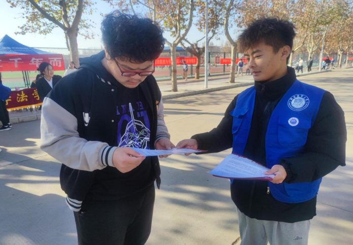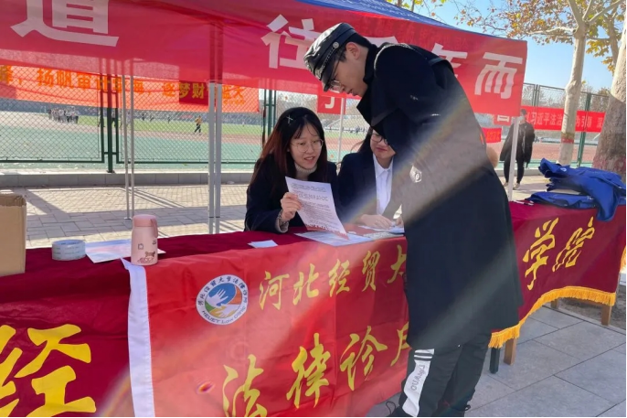 利用“宪法宣传周”的有力契机,将法治宣传纳入日常教育教学活动,向广大学生普及宪法知识,全面提高学生法治意识,培育懂法、敬法、守法的未来公民。11月29日-12月5日期间,beat365在线唯一官网组织学生开展了宪法知识竞赛、宪法日晨读、宪法宣誓、宪法传单发放等活动。在抓好“宪法宣传周”活动的同时,以特色品牌活动,推动普法宣传常态化,全年无间断面向广大学生开展各类法律知识竞赛,如“依法明辨”校园辩论赛、“我身边的宪法”演讲比赛等。在第六届河北省大中小学生“学宪法 讲宪法”大赛决赛中,beat365在线唯一官网荣获演讲比赛组一等奖、知识竞赛组二等奖的荣誉。此外,积极开展进校园、进社区“普法志愿者法治文化基层行”活动,先后走进经贸附中、走进美景东方小区进行普法宣讲,发放宪法单行本、宣传材料,提供法律咨询等。