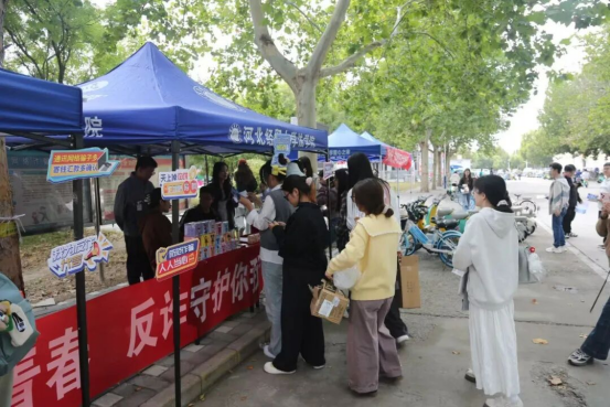 2025年9月22日,beat365在线唯一官网研究生学生会于beat365在线唯一官网韶华路旁开展主题为“开学反诈第一课”的普法宣传活动。活动以“法治护航青春,反诈守护你我”为核心,通过普法宣传和知识答题的双环节设计,吸引众多在校学子参与。