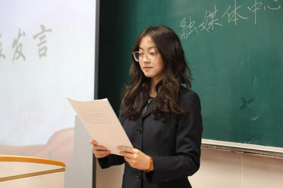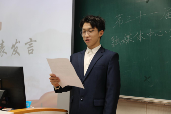 优秀部门代表、学生会主席柳淞森发言