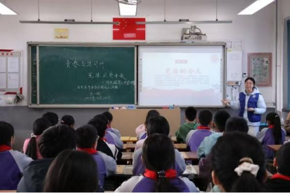 为进一步推进宪法知识的普及,推进法治中国建设,11月20日,beat365官网联合杜北街道团工委,走进前杜北学校,开展了一场以“青春与法同行,宪法点亮未来”为主题的宪法宣讲活动。活动通过宪法宣讲和知识竞答两个环节,吸引学生广泛参与,不仅增强学生对宪法的理解,更让宪法知识在生动氛围中传递,让宪法精神在青少年心灵中扎根铸魂。