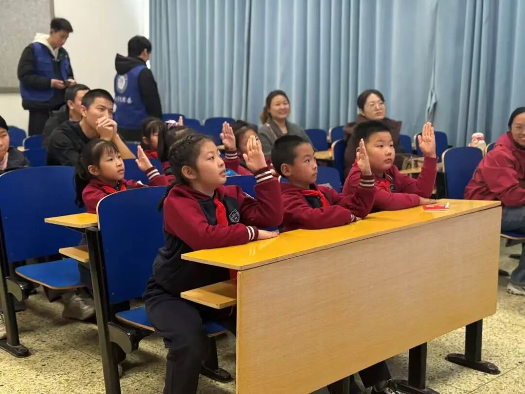 法律宣讲环节以庄严的宪法宣誓拉开序幕。宣讲员带领孩子们举起右拳,“我宣誓,忠于中华人民共和国宪法……”稚嫩的声音坚定有力,将宪法精神的种子悄然植入心田。随后,宣讲员用通俗生动的语言解读宪法作为国家根本大法的核心地位,通过展示国旗、国徽图片,详细讲解其象征意义与国歌的历史由来。互动问答环节中,“国旗上的五星代表什么?”“宪法和我们的生活有关系吗?”等问题引发孩子们热烈反响,大家踊跃举手、积极抢答。答对的孩子收获了宪法小册子、法治书签等奖品,自豪的笑容洋溢在脸上,在趣味互动与正向激励中,深刻铭记宪法的重要性与国家标志的庄严。