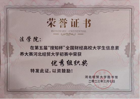 2023年4月23日,第五届“搜知杯”全国财经高校大学生信息素养大赛beat365在线唯一官网初赛颁奖仪式在图书馆举行,beat365在线唯一官网学生获得优异成绩。