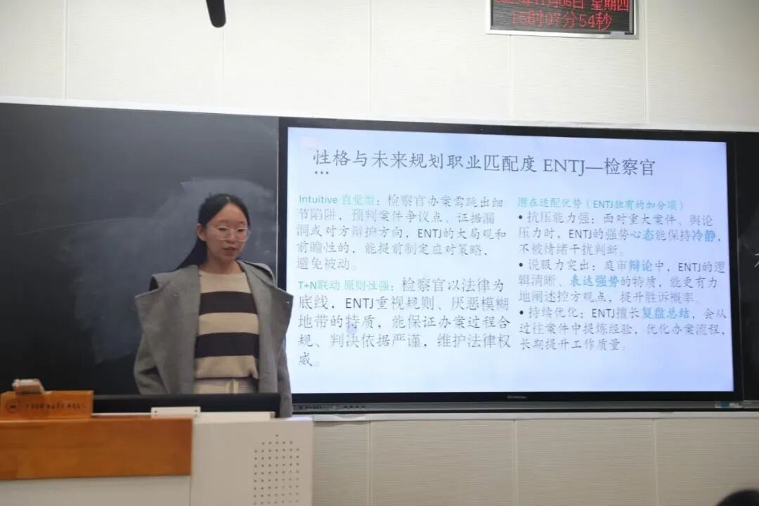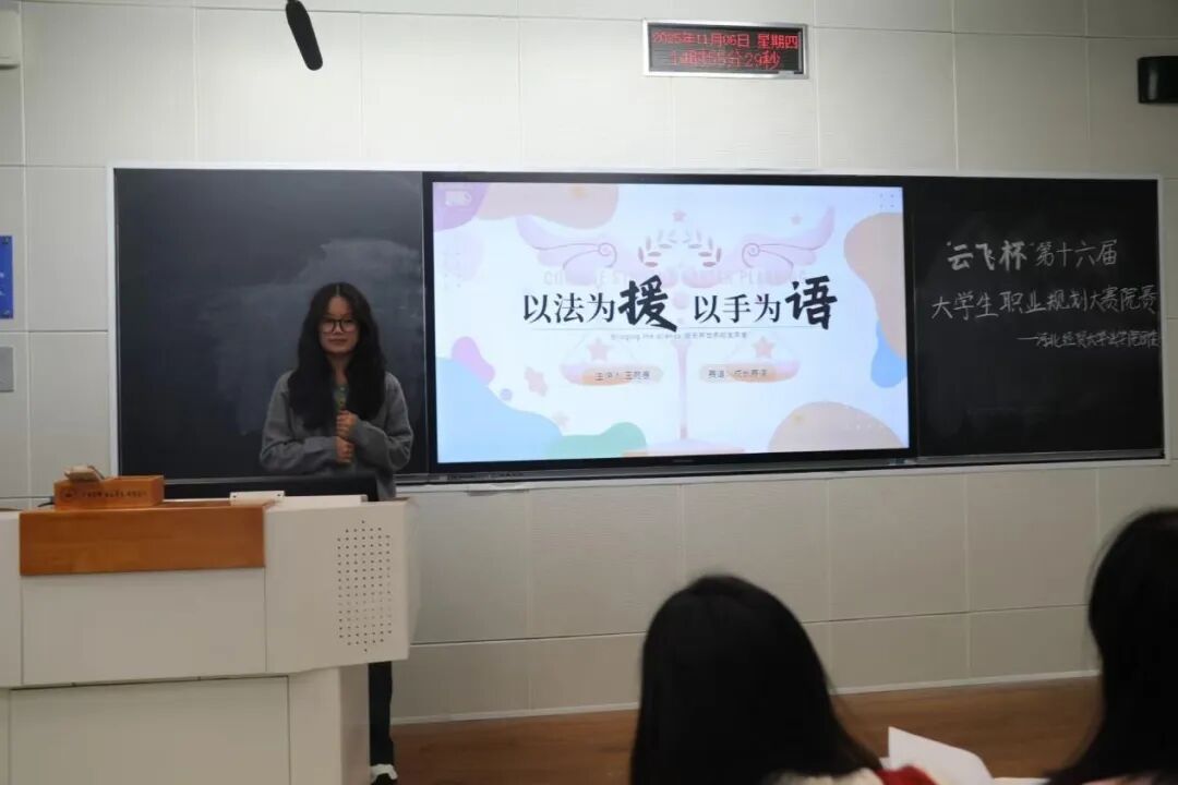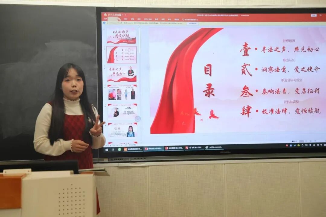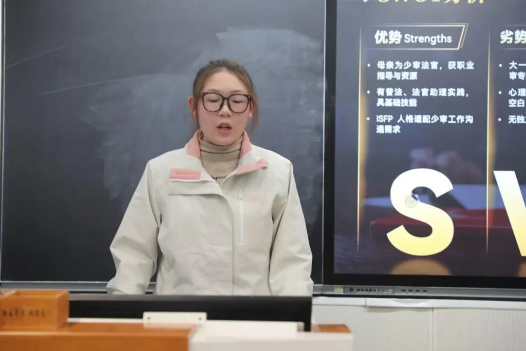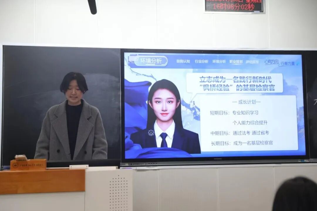 前辈引路,后浪奔涌。选手展示环节亮点十足,成为大赛核心看点。参赛学子们聚焦具体职业方向,用动态数据模型直观呈现岗位进阶路径;针对法考备战、实习选择等关键节点,配套详实的风险评估与应对方案;不少选手拆解短期考证、中期实习、长期晋升的具体目标,逻辑清晰、落地性强。大家自信从容的表达、求真务实的规划,充分展现了beat365在线唯一官网学子的专业素养与青春风采,赢得现场阵阵掌声。