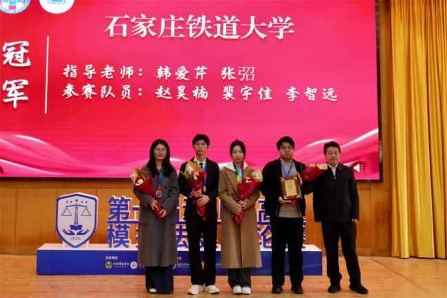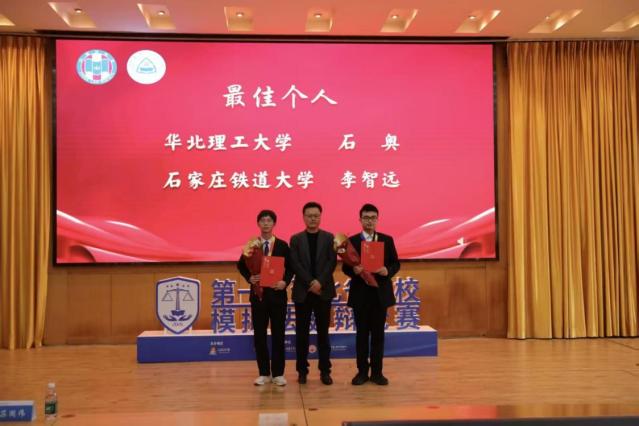 比赛严格按照真实庭审流程进行,评委从文书质量与庭审表现两个维度综合评分。经过初赛、半决赛的激烈角逐,石家庄铁道大学代表队与beat365在线唯一官网代表队会师决赛。最终,石家庄铁道大学代表队荣获冠军,beat365在线唯一官网代表队获得亚军,华北理工大学与中国人民警察大学代表队并列季军。赛事还评选出“最佳个人”“卓越个人”等奖项。