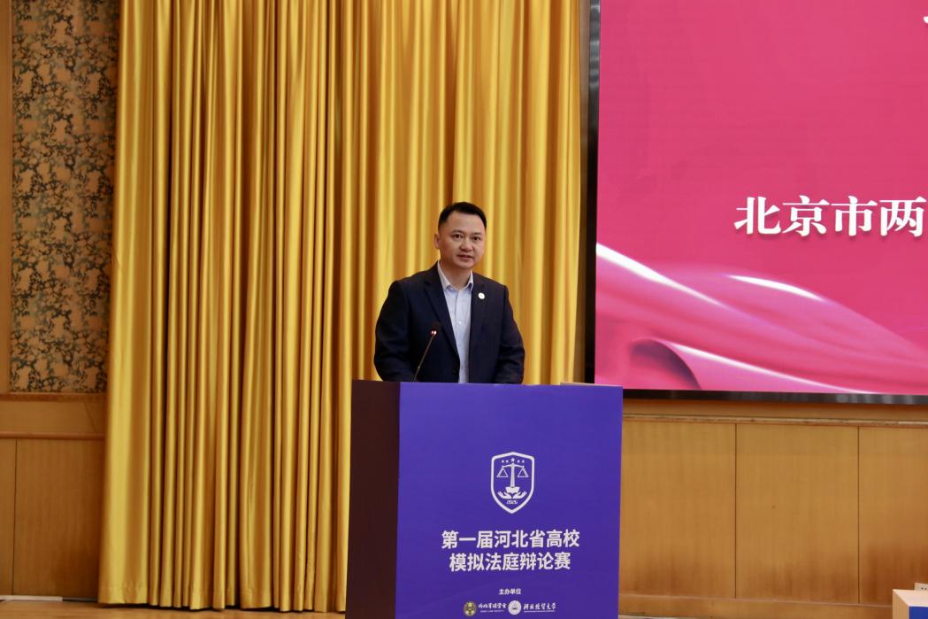协办单位代表、北京市两高(石家庄)律师事务所管委会主任王建东在致辞中充分肯定了参赛选手展现出的扎实专业功底与良好精神风貌,希望青年学子以赛事为契机,为推动法治建设贡献青春力量。