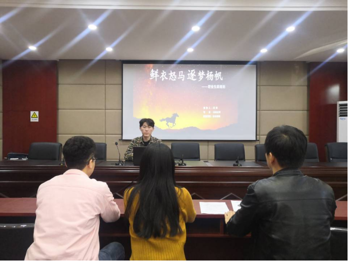 本次大赛分为职业生涯规划设计文本作品评审、职业生涯规划设计作品现场展示和评委提问三个环节。比赛中,选手们以职业生涯规划为主题,以近期职业生涯发展规划为重点,对自我和外部环境进行了全面分析,详细讲解了自己的职业决策的发展路径和行动计划。现场答辩环节中,评委老师针对选手的职业生涯规划书和现场PPT展示进行提问,同时也提出了指导性的建议。经过紧张激烈的角逐,来自2021级民商法学专业研究生袁璞成功晋级学校复赛。